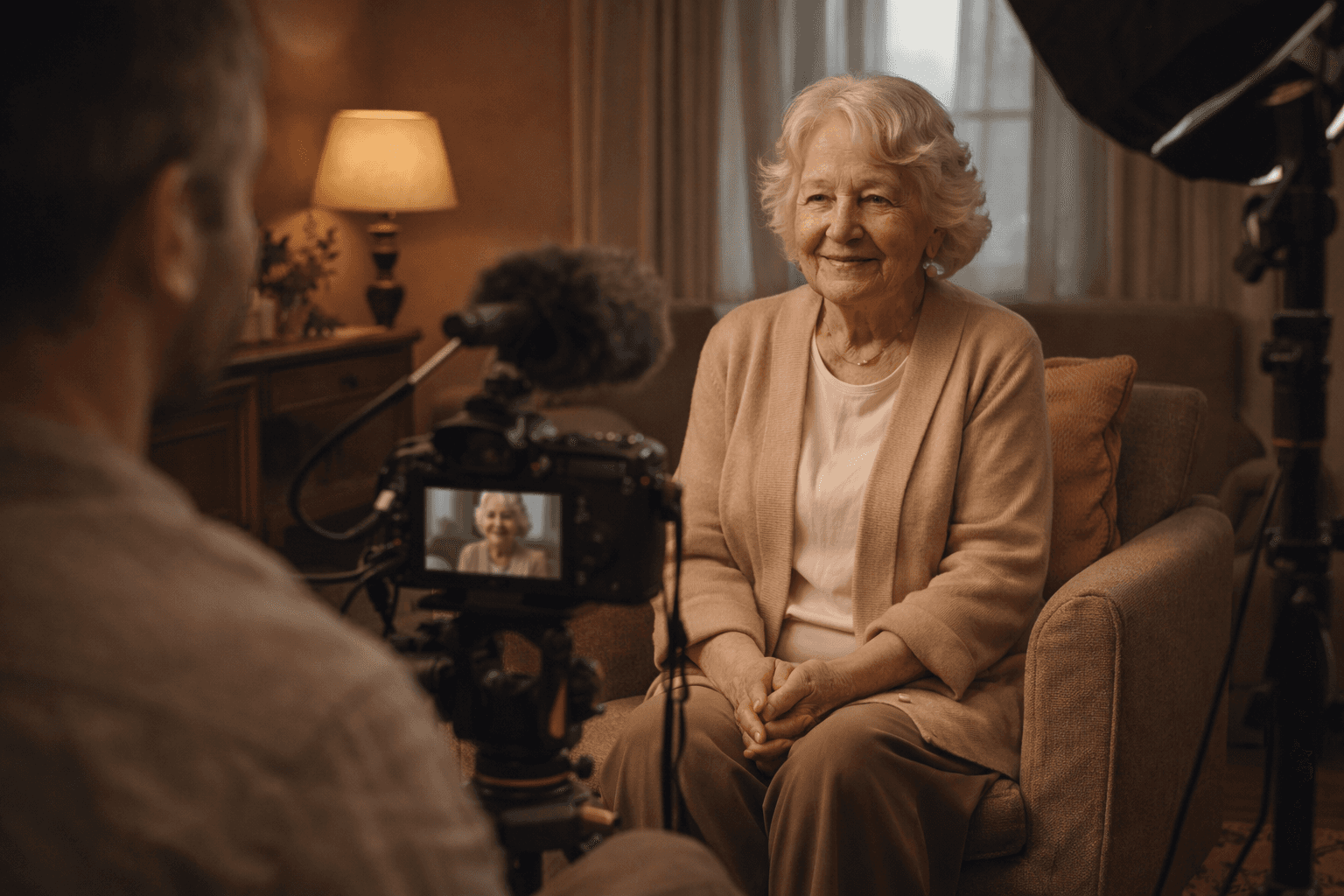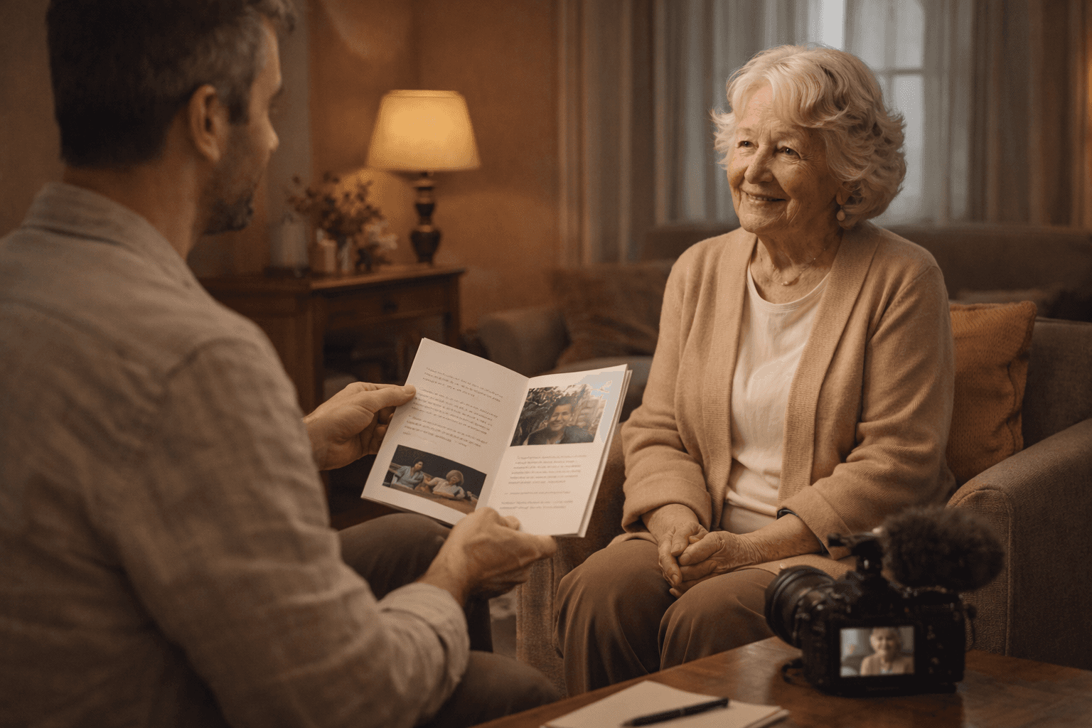 Nous aidons des familles et des personnes âgées à enregistrer ce qui compte vraiment, pendant qu'il en est encore temps, dans un cadre respectueux, calme et maîtrisé.